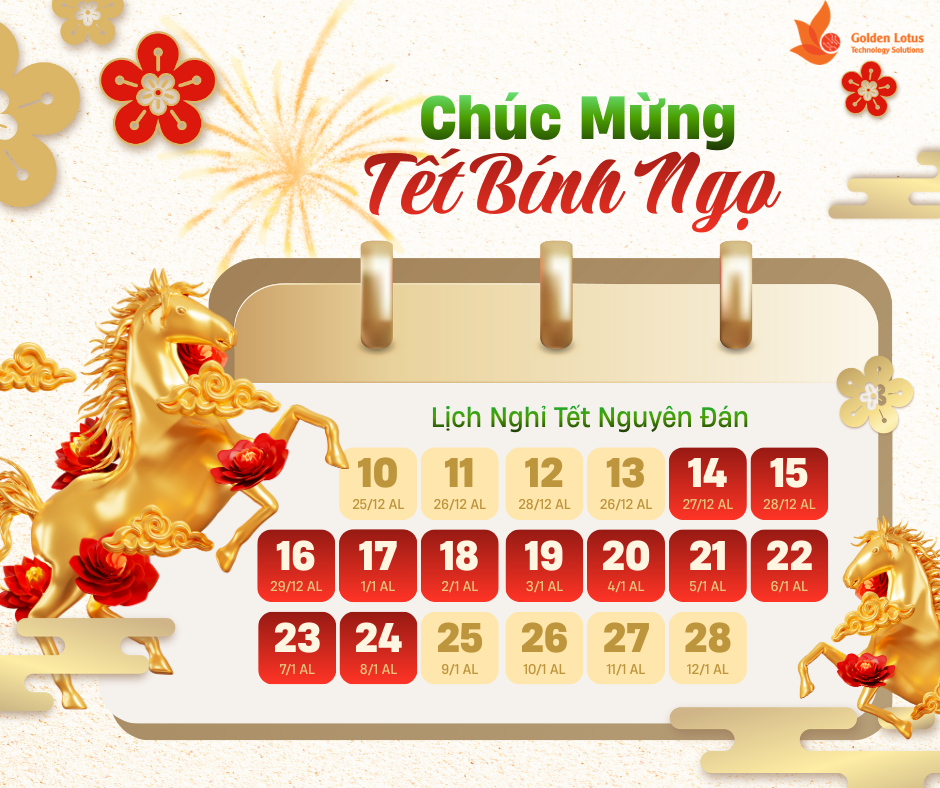 Năm mới Bính Ngọ đang đến gần, Golden Lotus xin kính chúc Quý khách hàng, Đối tác và gia đình một năm mới: AN KHANG THỊNH VƯỢNG – VẠN SỰ NHƯ Ý – MÃ ĐÁO THÀNH CÔNG Chúc cho hành trình của chúng ta trong năm 2026 sẽ luôn tràn đầy năng lượng, bứt phá mạnh mẽ như những chú ngựa vàng!